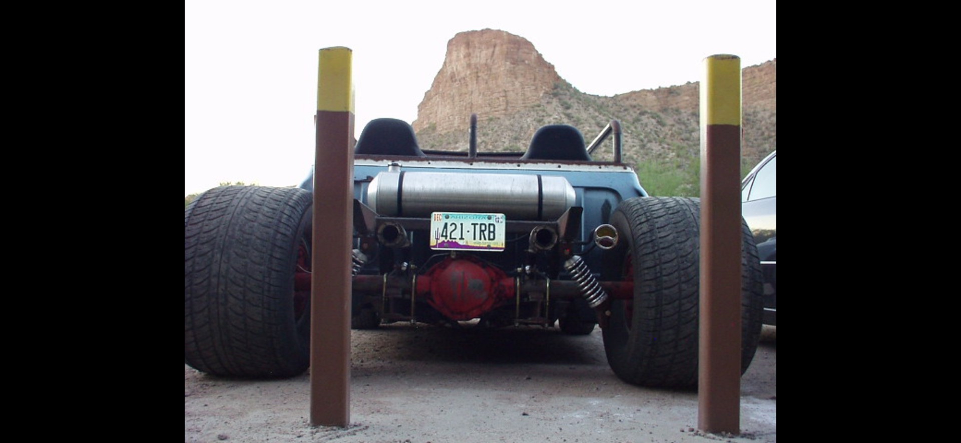 I used a 1776, (a punched out Volkswagen engine) and a 4-speed automatic Toyota transmission, to drive this beast!