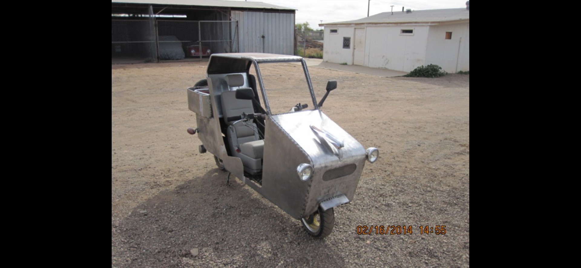 This was an 86 or 87 Honda Helix, that I to removed all the plastics and built a tube frame around it and then sheet metaled it in, to form a little 50s looking pickup truck.