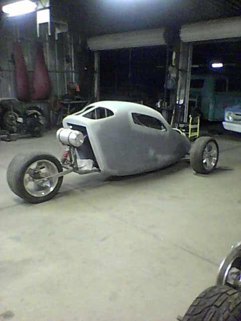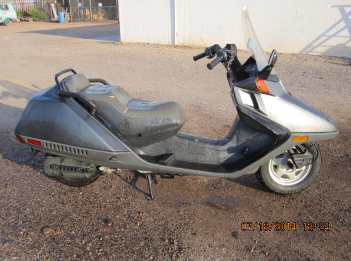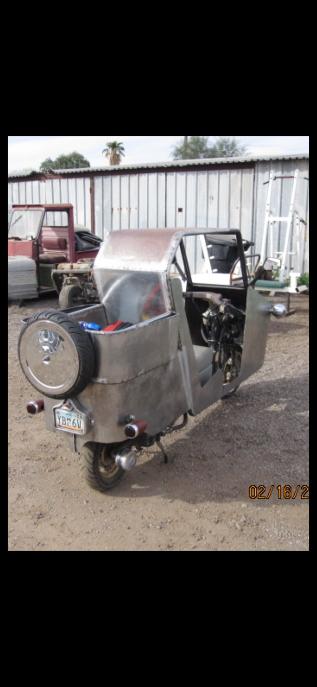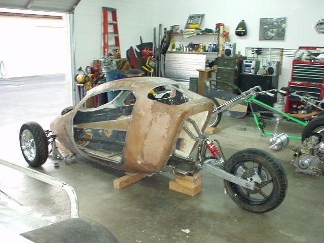This was an 86 or 87 Honda Helix, that I to removed all the plastics and built a tube frame around it and then sheet metaled it in, to form a little 50s looking pickup truck.